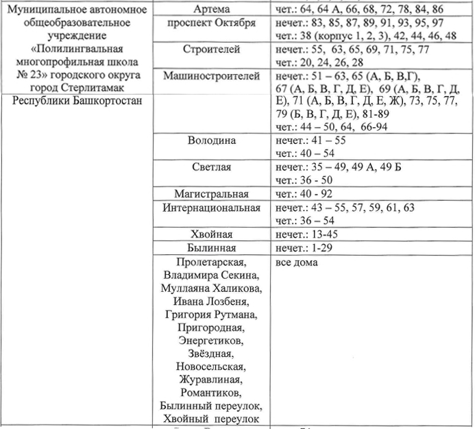 Закрепленная за МАОУ «ПМШ №23» г.Стерлитамак РБ территория: